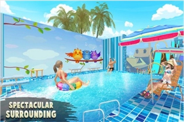 1、玩家化身水上爱好者,自由体验游泳滑梯等项目