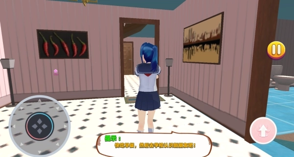 3、利用虚拟摇杆操控着少女在吃完早餐,然后去学校认识新的朋友。