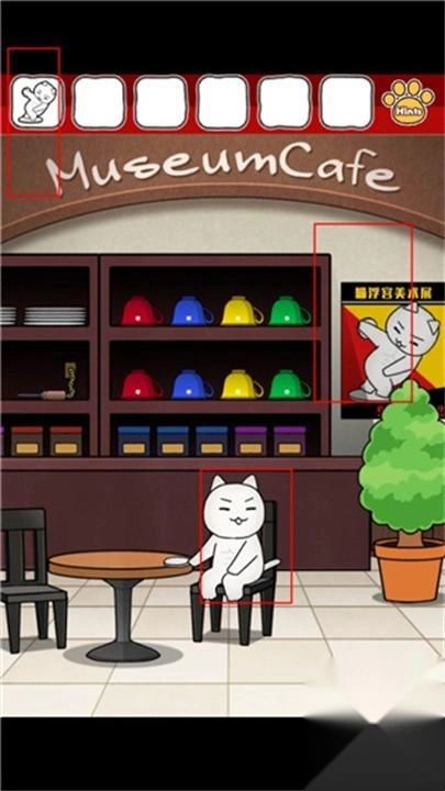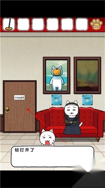 9.将猫咪雕像给白猫,然后点击后面的海报。
