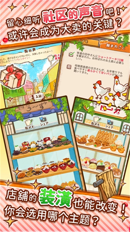 4、获取食谱不再是唯一的玩法,还可以重建糖果屋,DIY设计商店的外观并自由摆放店内物品。