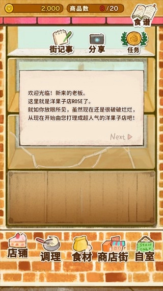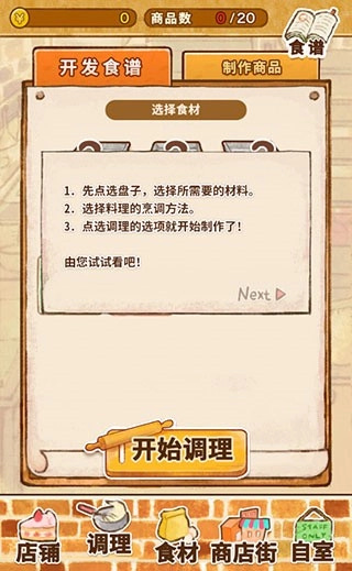 3、点击底部的【商业街】,就能采购各类食谱,用来制作美味的甜品。