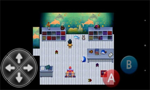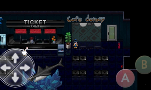 2、操作界面采用了传统的虚拟控制布局,左侧方向键负责操控角色爱丽移动,右侧的A键用于与场景或物品进行互动,B键则能够开启背包并使用里面的物品。