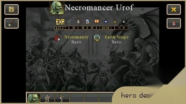1、每个种族都包含力量型英雄与魔法型英雄两种类型,英雄能够率领7队士兵,并且拥有独特的英雄特技!