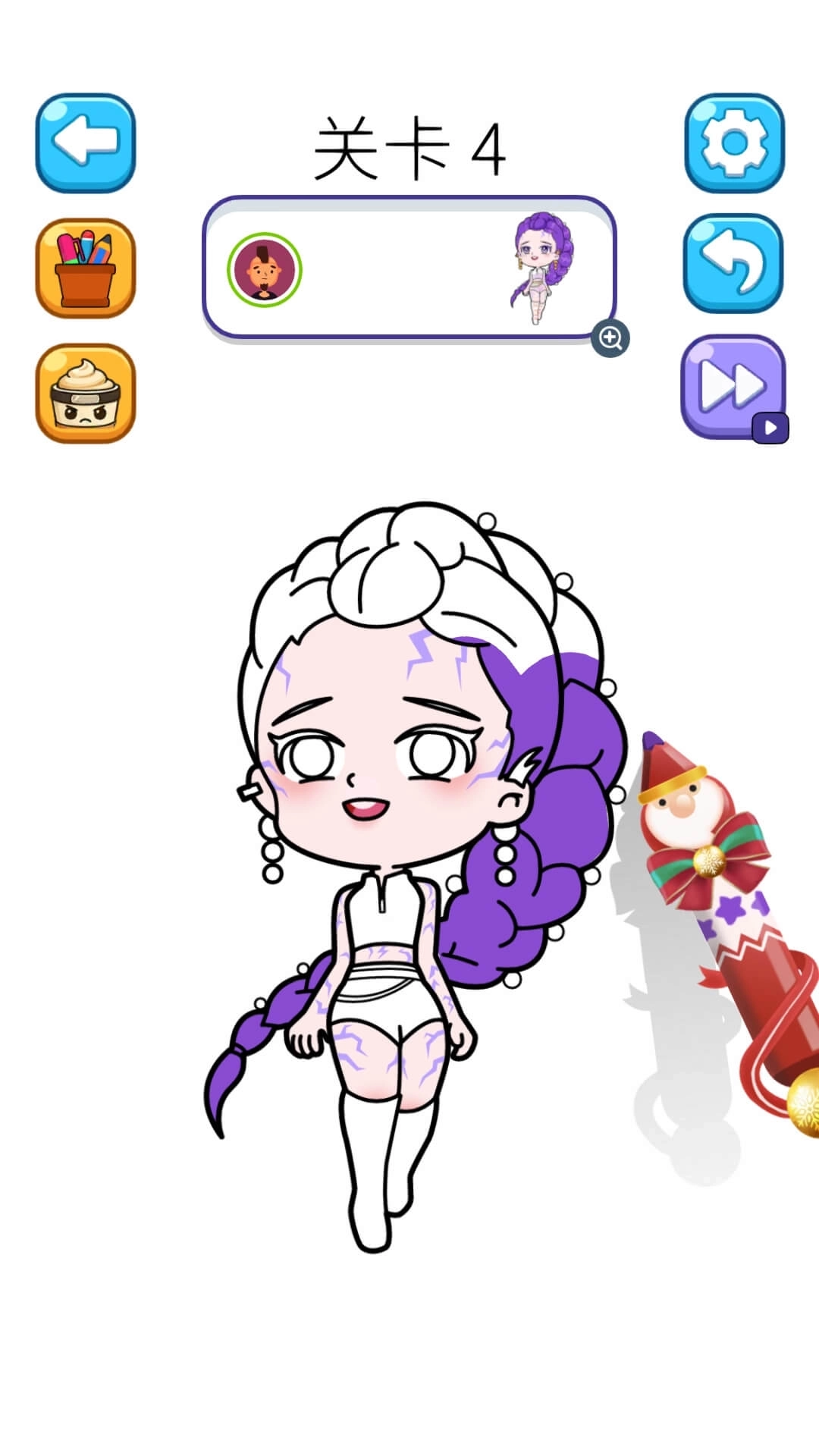 梦幻填色大师游戏:神奇的画笔能够模拟出各种颜色,玩家可以按照自己的想法对图案进行填色,可以先对头发进行上色,然后再对上衣进行涂色,让角色的整体搭配看起来更顺眼。每次完成创作之后,还能进行保存,跟自己的朋友一起分享,看看谁的搭配更好看!