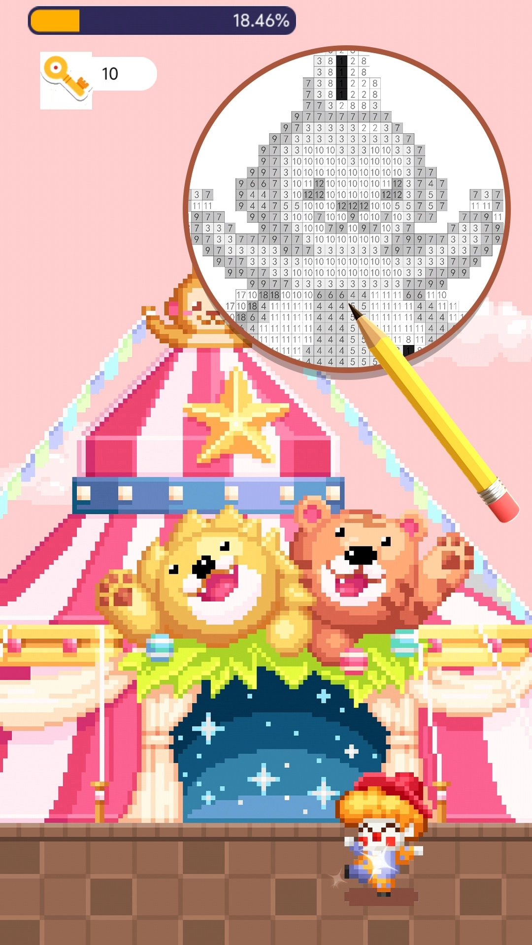 钻石涂色高戏中的所有图画都是由一个个小的像素方块组成,而且每个像素方块上面都有编号,玩家用上色笔涂色的时候,可以直接放大图画,按照编号来给图画上色!两个手指同时向外滑动就可以放大画面,向内滑动就可以缩小画面,操作起来很顺滑哟!
