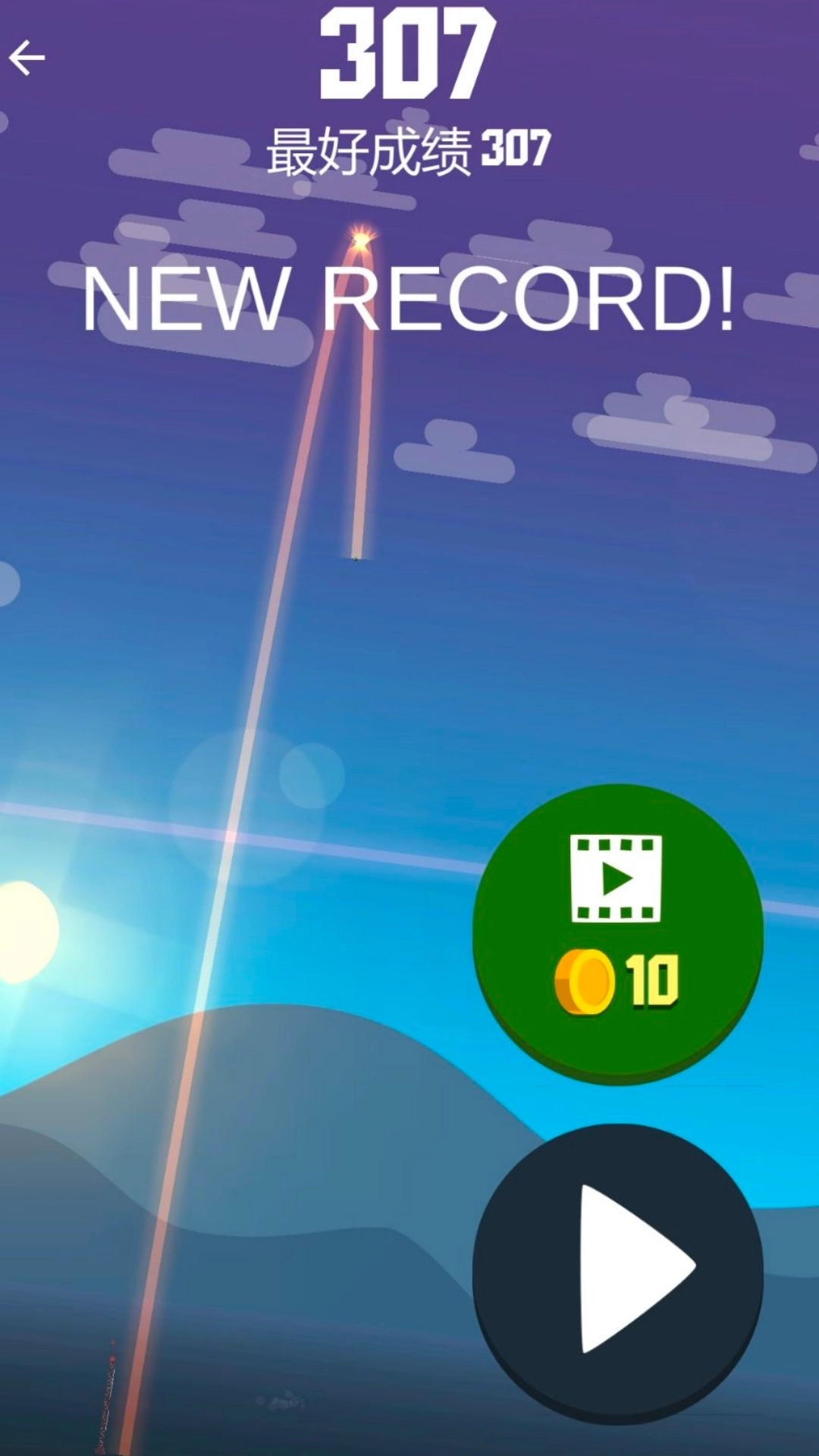 2、火箭窜天时屏幕会有动态轨迹线,看着像在画星空,玩着玩着还能当画画游戏玩。