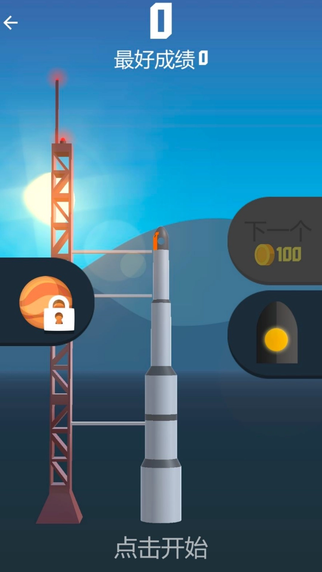 2、目标明确,就是让火箭飞越云层冲进太空,每窜高一段距离就解锁新星星特效。