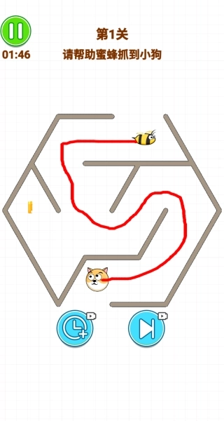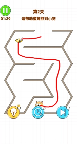 2、我选的是画线迷宫,第一关时间有限,你要帮助蜜蜂抓到小狗,有手指指引很简单。