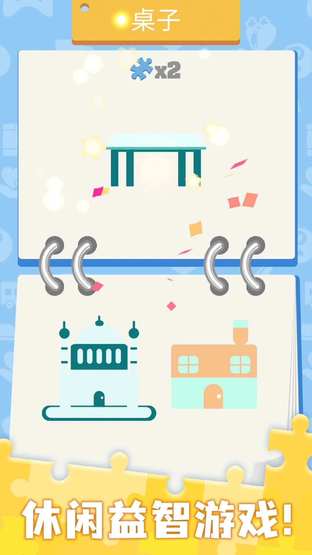 1、跟着关卡的推动,图片的复杂度和碎片数量都会逐步添加,应战性也会越来越大;