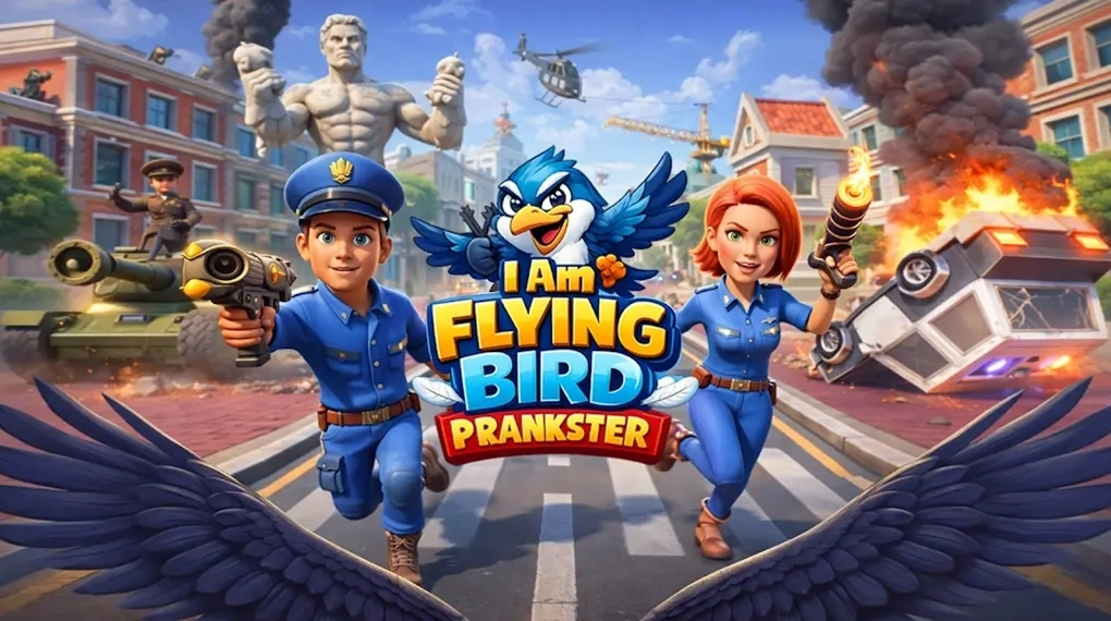 我是飞鸟捣蛋鬼(IAmFlyingBirdsPrankster)游戏:成为一只能够自由飞翔的小鸟,遨游在城镇的上空,玩家可以去搞破坏,也能去做好事,反正自由度是挺高的!从高空往下俯冲,去攻击地面的行人,吓一下他们,只要不被人类抓住,玩家可以一直干坏事哦!