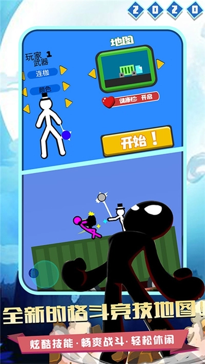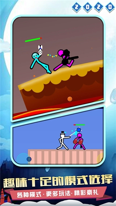 《火柴人对决2020》属于休闲竞技类型的游戏,玩家进入游戏后挑选一个火柴人就能加入对战,只需操控火柴人做出动作来击败敌人就行。