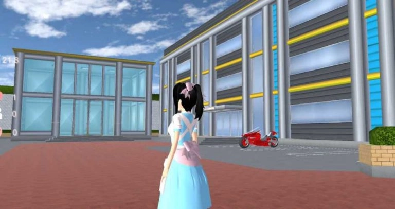 红色摩托车(EV自行车)停在向日葵组办公室旁边的大楼前。你可以骑车和开车,甚至可以发射导弹。