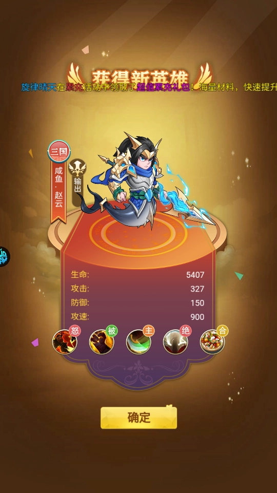 5、获得新英雄红将赵云。