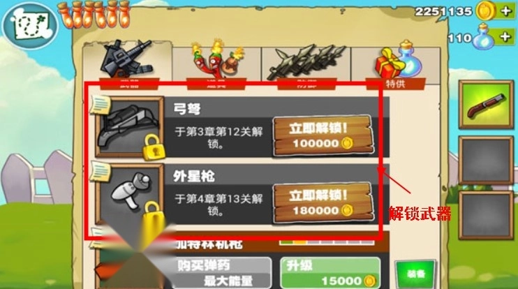 4、玩家还能够在开始新的关卡之前解锁新的武器。