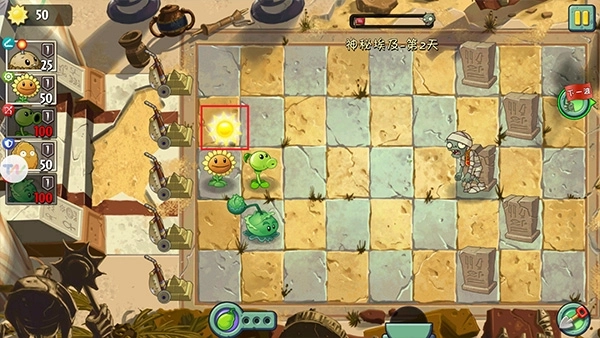5、一旦发现植物被僵尸啃食,应立即补种或使用后备植物填补防线空缺