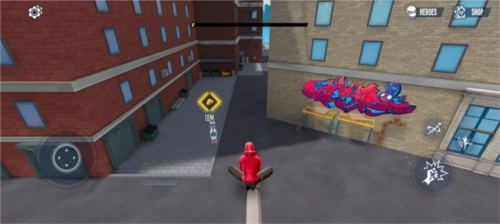 1、启动蜘蛛侠英雄3后点击屏幕进入游戏,初始位置为一根高柱之上