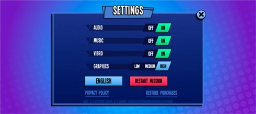 2、开始前可点击左上角设置按钮调整音效、画质及语言选项(目前暂无中文)