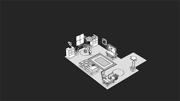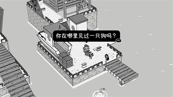 游戏采用黑白手绘与3D元素相融合的设计风格,场景像童话绘本一样简洁明快,人物以纯2D形式呈现,再搭配3D立体物件(比如树木、建筑等),以此营造出独特的视觉层次感。