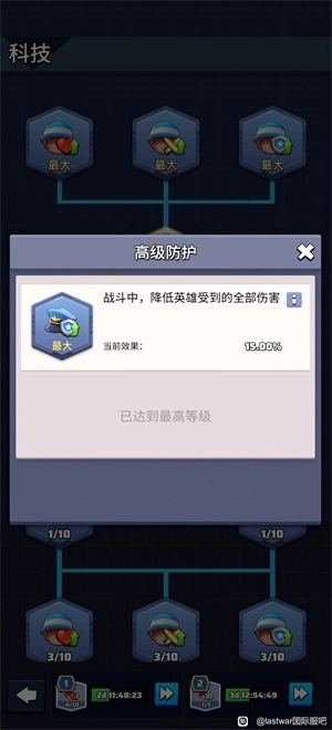 科技战力我只说两项(当然其他项也重要),一个是特种兵的减伤,一个是发展里的治疗速度。前期经常有英雄星级差距不大,战力差不多,但是打不赢的情况,基本都差在这。医疗速度影响战斗续航,治疗伤兵帮助一天只有200次,在帮助次数相同的情况,治疗速度会影响治疗的士兵数。战斗激烈的话,伤兵没协助会很尬,氪佬可以无视。