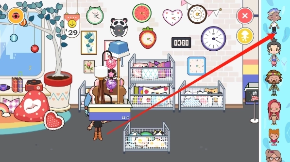 6、回到家后,再将角色拖出即可开始布置家居环境。