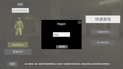 8、同样选择相同地图与地区,并输入相同的房间名称。