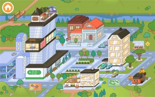 1、进入游戏后,我们首先可以看到自己所在的街道,最高的大楼是商业用楼,里面有很多办公室,远处是学校,近处是自己的家,在右侧还有一栋居民楼和修理厂等。