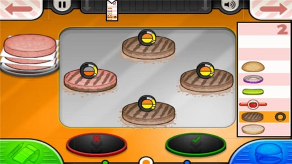 3、在首位顾客光临前,可预先烤制几块肉饼。顾客取走菜单后,应马上补充几块新的肉饼,以此保证后续的需求能够得到及时满足。