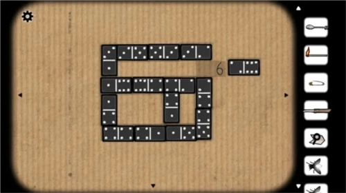 9、点击桥牌,按照规律摆放(首次进入无数字6提示,退出重进后会出现),完成后纸壁翘起一角,撕开查看提示;
