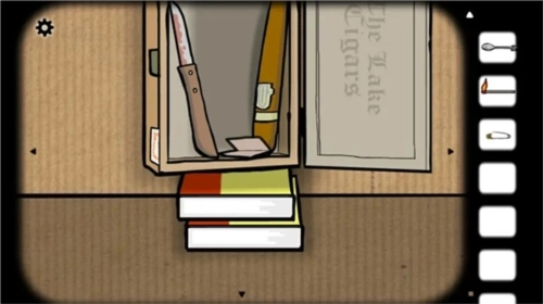 6、使用钥匙打开锁住的盒子,取出「雪茄」、「刀」以及「纸条」。将雪茄插入鱼嘴中并用火柴点燃;
