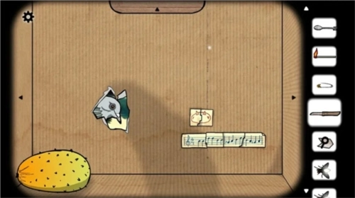 8、用刀划开纸壁裂缝,露出一个鸽子头像,连续点击五次会播放一段音符;