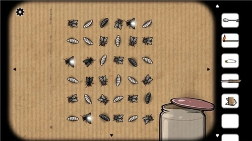 7、用刀撬开盖子,依照纸条说明:“每行每列不得出现三个连续的苍蝇或卵”,合理排列后获得三只「发光的苍蝇」;