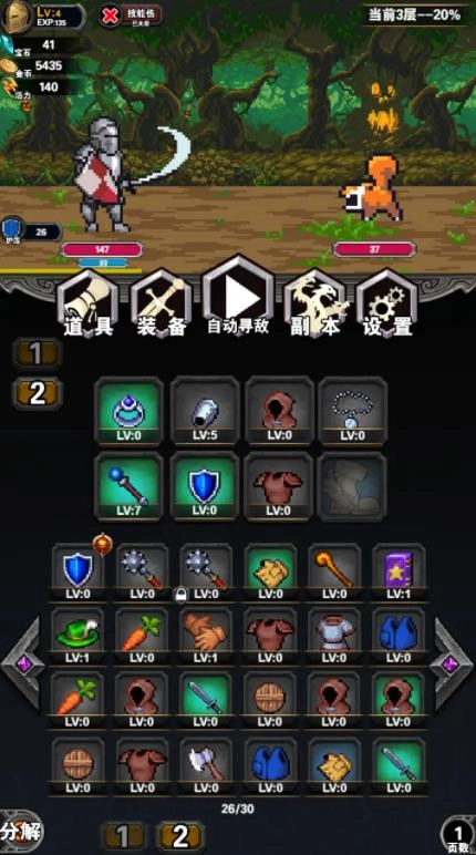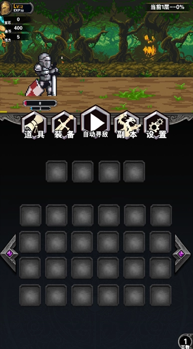 竖版界面:采用上下分区的竖版设计,上部为战斗场景展示区域,下部则是装备栏,整体操作流畅顺手。