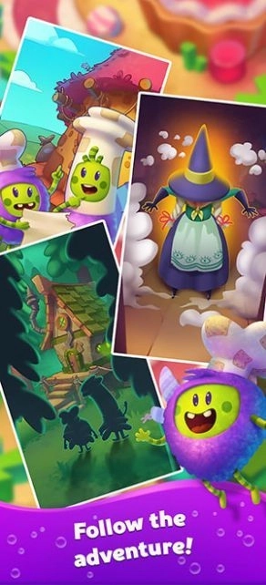 3、穿越地图,匹配并炸开每个关卡中的果冻方块,拯救巴巴果仁糖