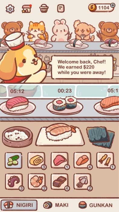 3、将寿司店做大做强,逐步解锁更多的寿司食谱。