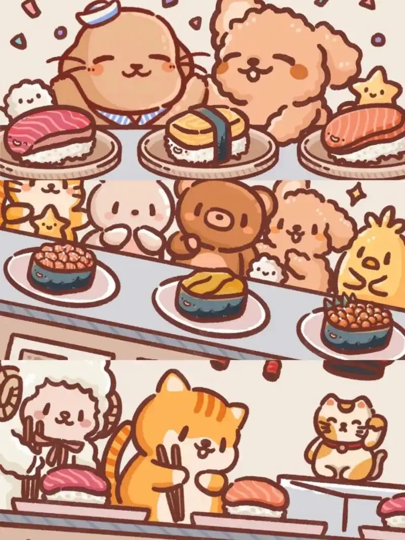 1、温馨的动物小镇上,可爱的狗狗开了一家寿司店。