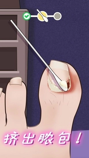 抠脚大师游戏中玩家扮演着一名专业的修脚师,每天都有很多顾客前来你的店铺中进行修脚,你要做的就是帮助他们把脚指甲修理的整整齐齐,必须要在规定的时间内完成修脚才能够获得报酬哦,游戏玩法十分简单易懂,上手也会非常快,过程也十分解压哦。