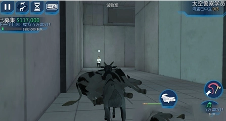 进入实验室完成四个实验任务,踩蓝色按钮掉落奶牛,按照提示完成实验即可