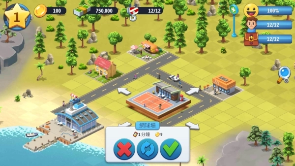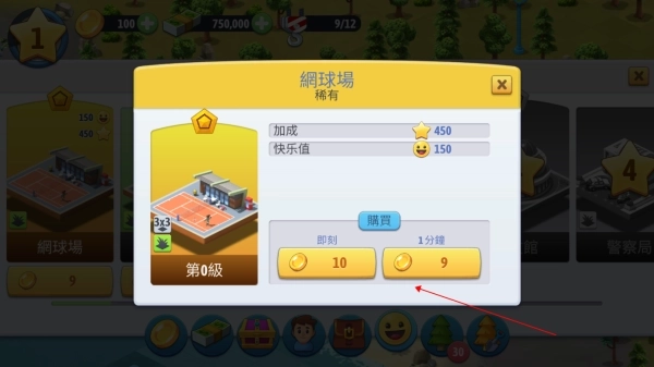 5、例如选择网球场这类休闲设施,点击购买即可准备放置。