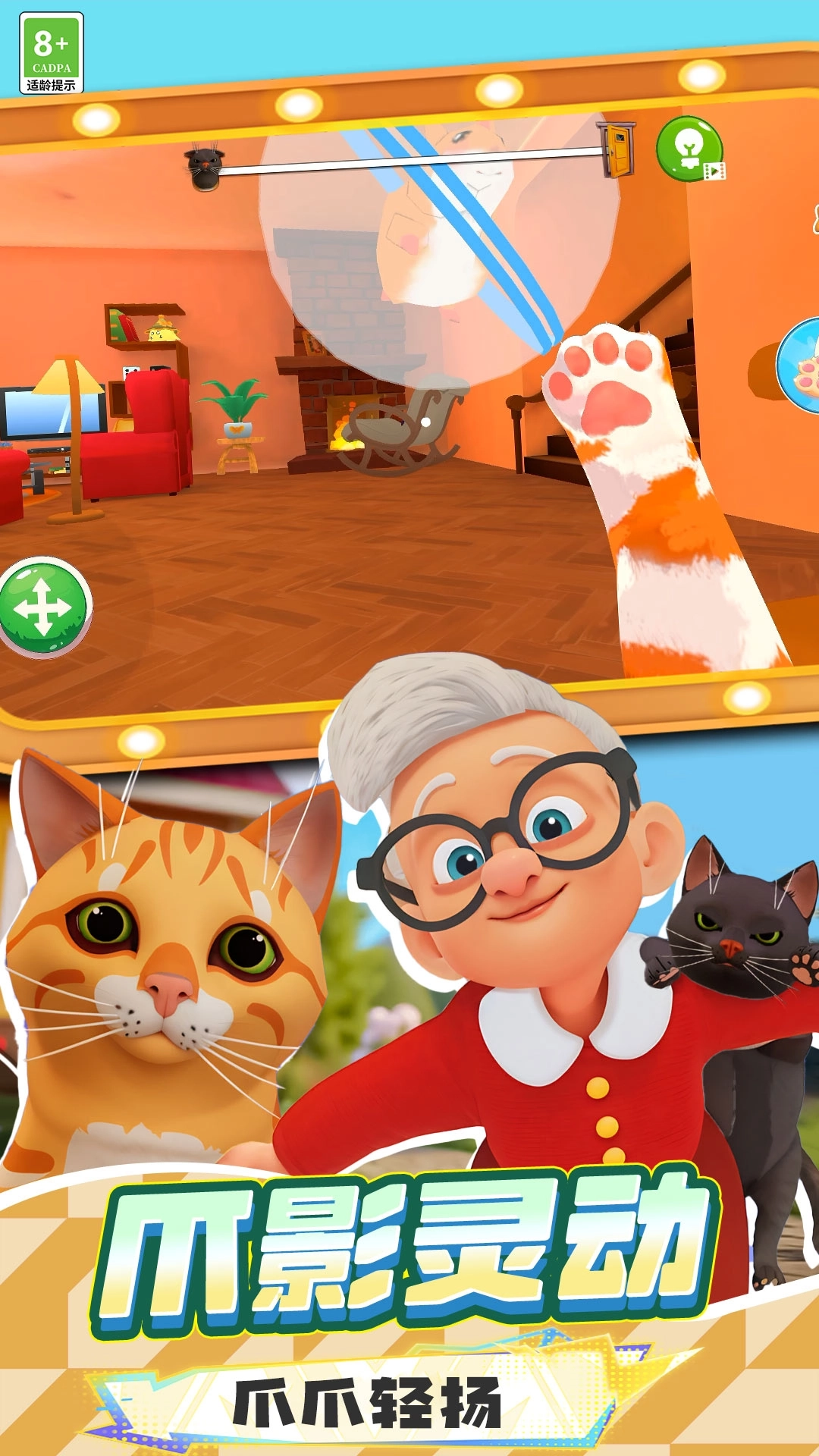 2、黑猫拥有隐身与快速移动技能,可在关键时刻躲避弟弟视线完成潜行布局。