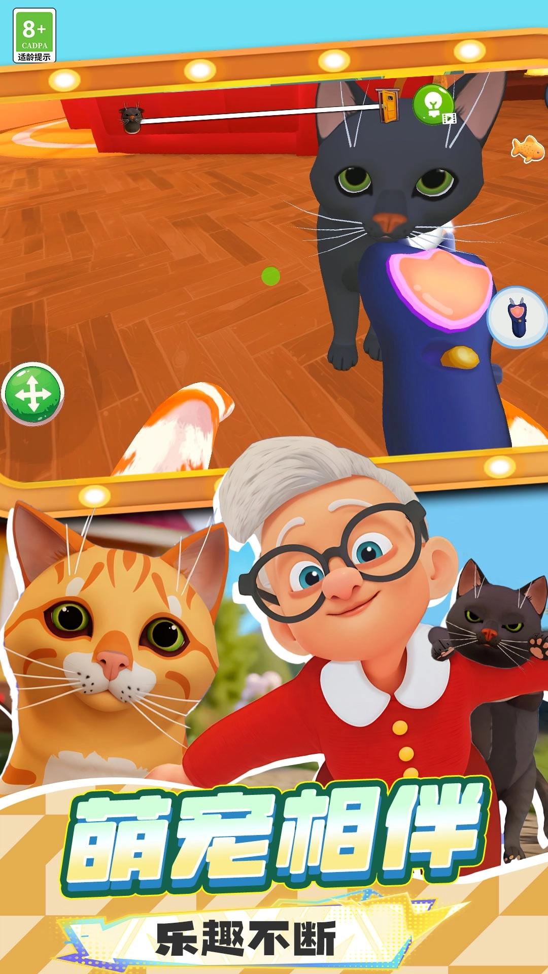 狗狗别追我游戏是一款可爱主题的动物模拟游戏,玩家将在老奶奶的房间中进行冒险,期间可以去完成任务,解锁一些皮肤还有其他角色,比如在厨房捣蛋,在餐厅探索,寻找收集道具,这些玩法都轻松解压,让你体验追逐的乐趣。
