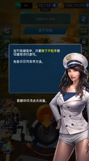 这里最精彩的是还有美女玩家陪你钓鱼,你能够钓到各种不同种类的鱼,还能够跟最强的超级挑战鱼挑战。