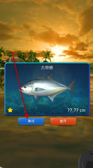 5、若未能成功捕获,系统会显示该鱼种信息,点击左侧重试按钮可重新发起挑战。