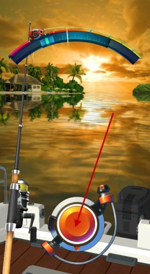 游戏中玩家通过通过点击画面来控制钓鱼竿的角度还有力度,如果发现有鱼上钩就可以立马点击按钮收回鱼钩。
