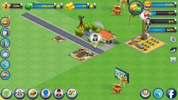 1、创造就业岗位,让快乐的居民为你持续带来金币与现金收入。