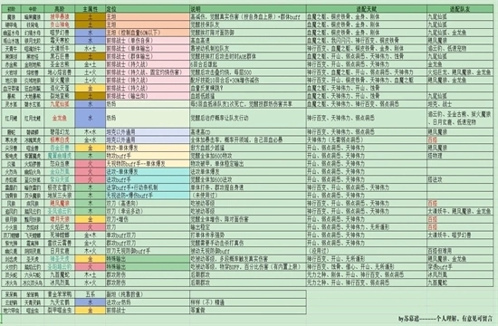4、天赋被动血量、攻击力、速度基本通用,其余的根据定位有个别适配(比如白虎不需要会心、龟龟和黑石巨兽不需要闪避);