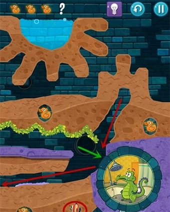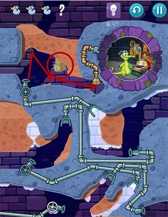 注意不要让所有水都流入浴缸,需预留一部分水流,继续向下挖掘一条路线,使这部分水能流向左下方的小鸭子区域,从而获得隐藏奖励。