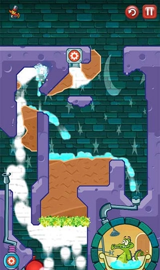第一步是在左侧水源处挖掘通道,在植物阻塞之前将水流引向小鳄鱼的浴室。