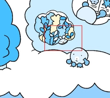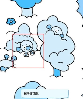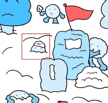 1、先来看第一个小云朵人的位置,它在左上角的那片森林里,如图所示。