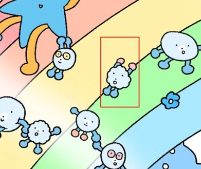 9、把屏幕往右边滑动,找到彩虹所在的位置,我们的红耳小兔就待在彩虹正中间哦。