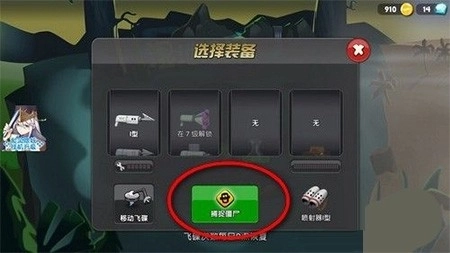2、点击【发现僵尸】后,你会被传送到湿地沼泽地图。选择飞碟停靠的位置,然后在弹出的装备选择界面中挑选合适的捕捉工具,最后点击【捕捉僵尸】开始行动。